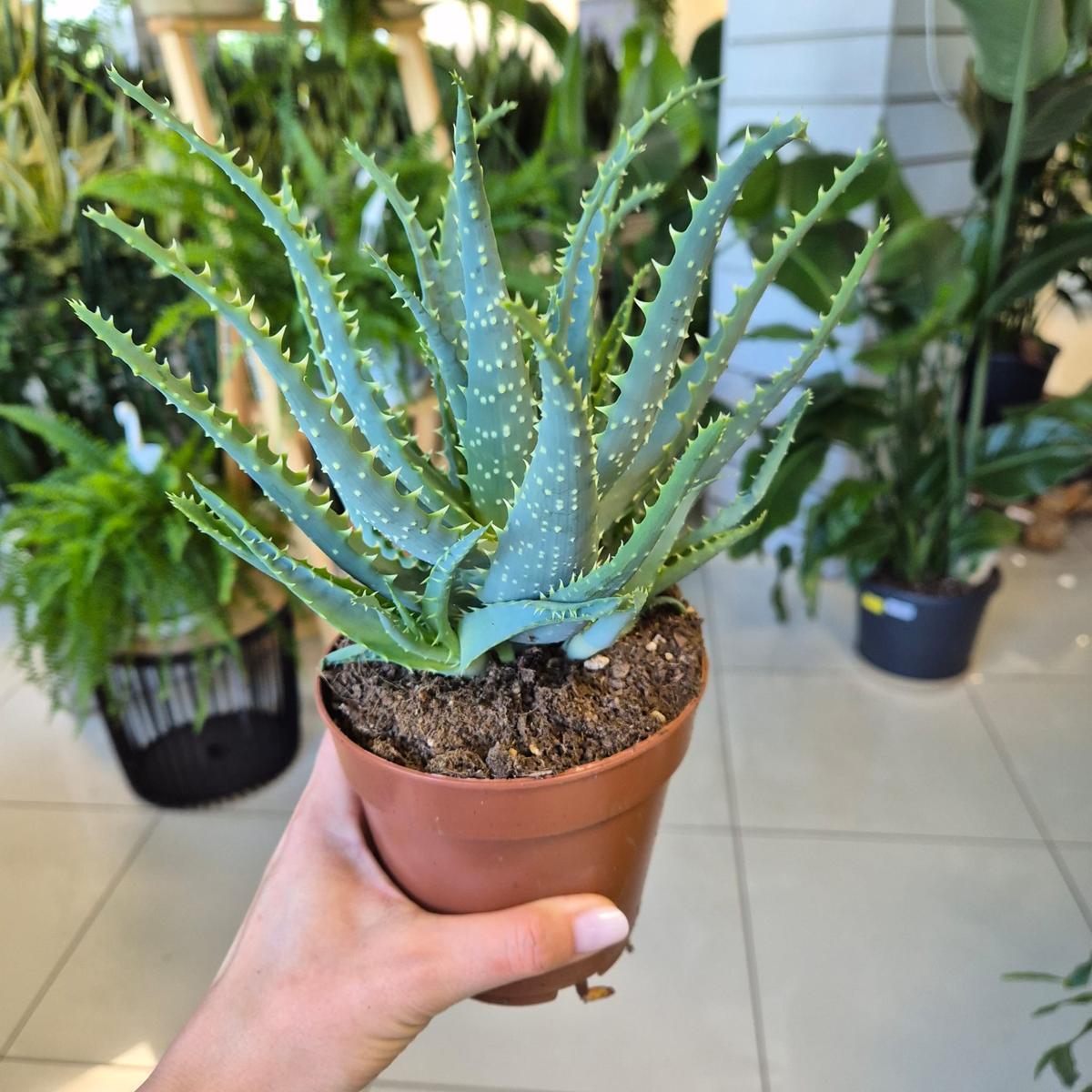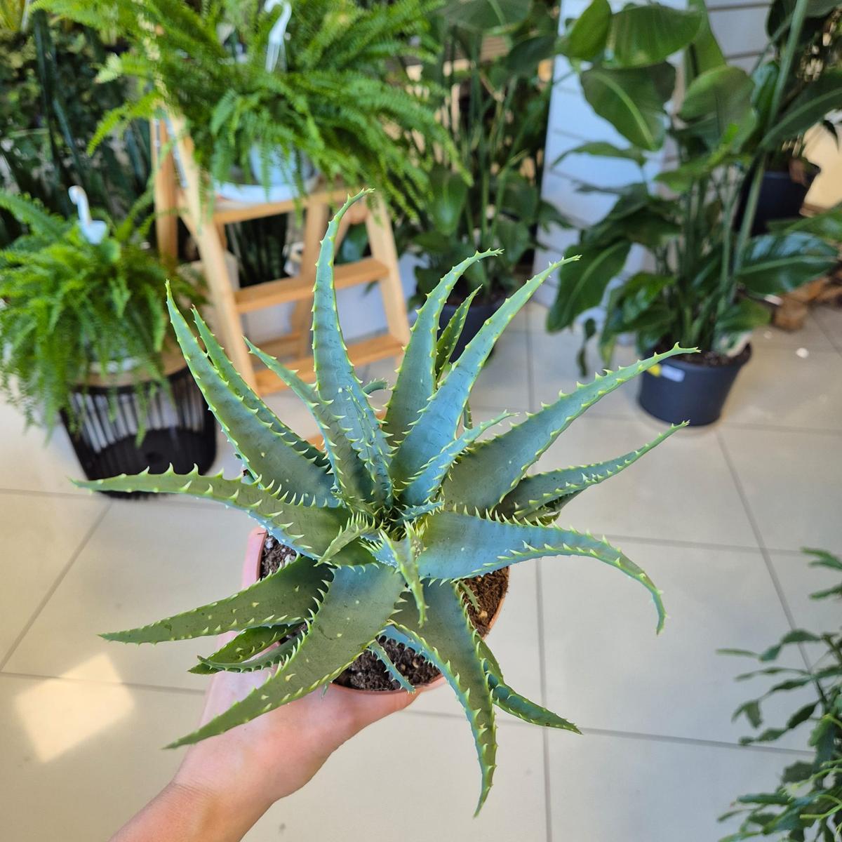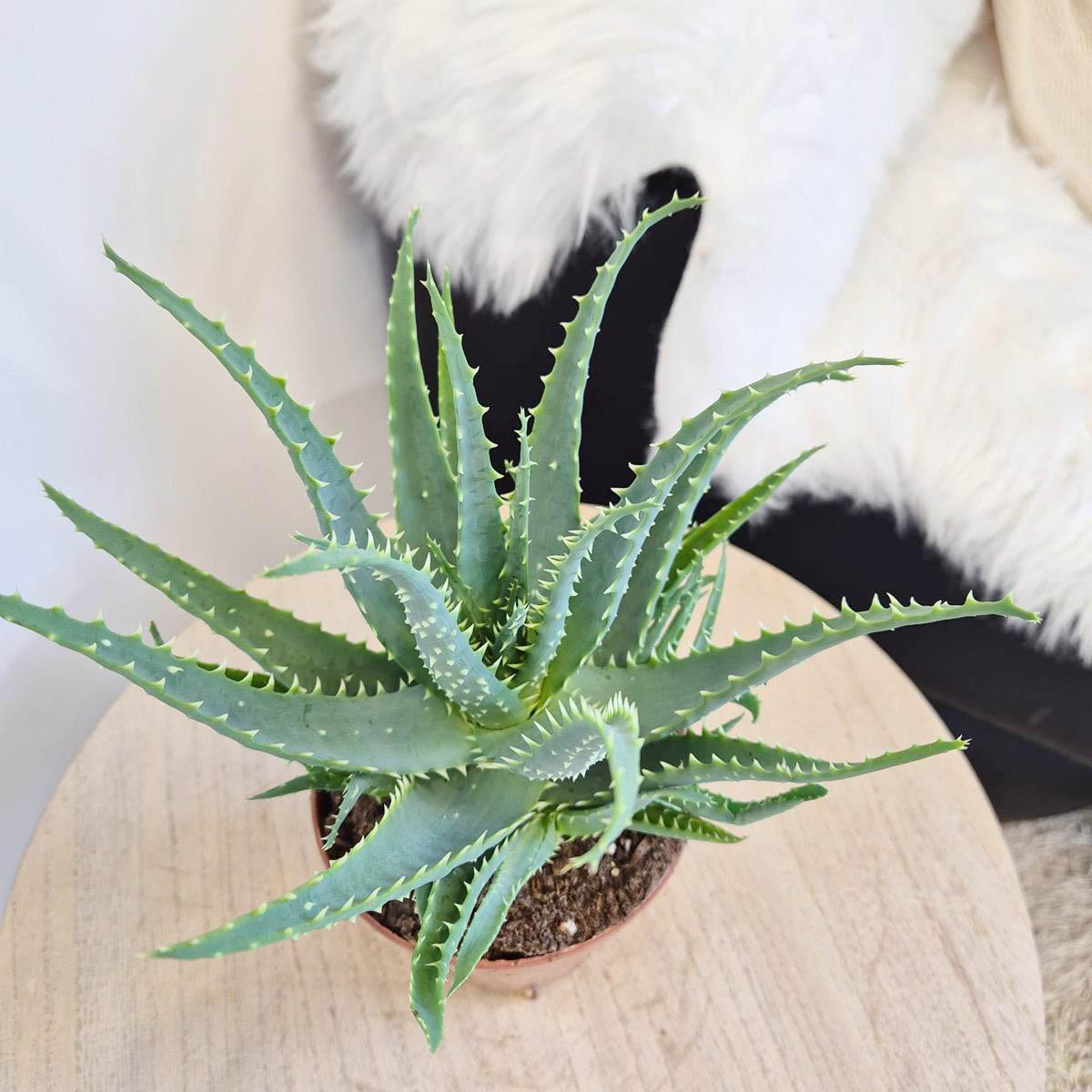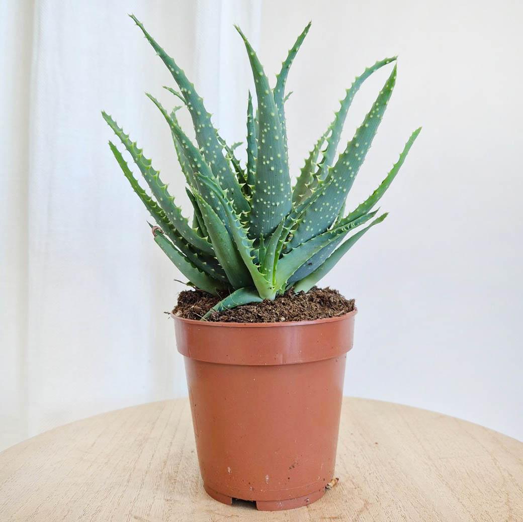Aloes jest sukulentem o grubych, kolczastych liściach, w których magazynuje wodę. To w nich znajduje się miąższ. Roślina bardzo łatwa w uprawie, dobrze znosząca suche powietrze w mieszkaniach.