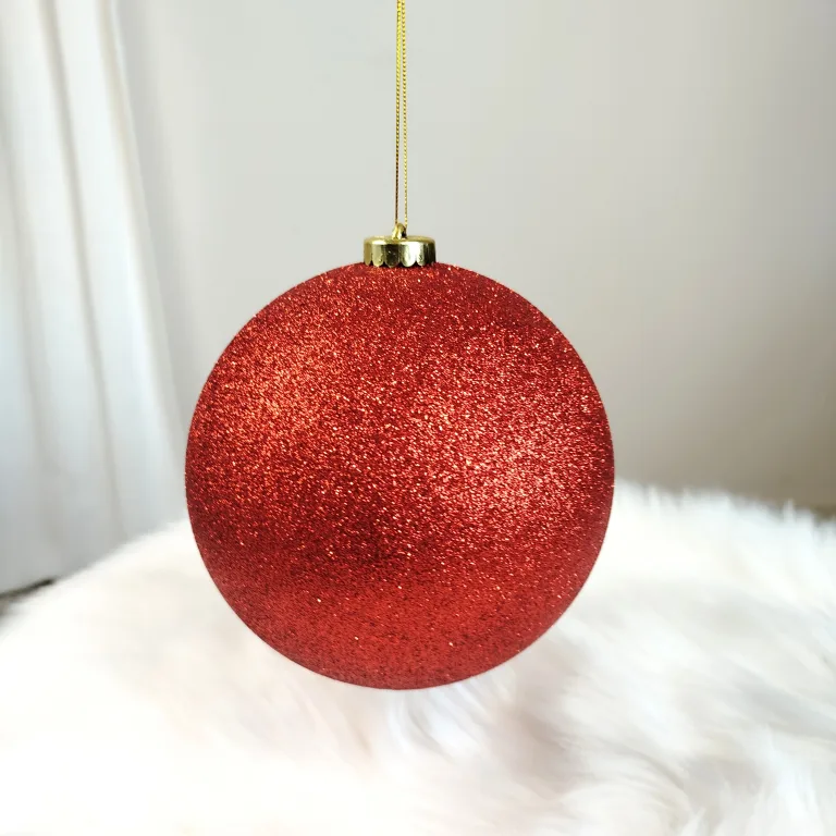 Bombka duża czerwona brokatowa nietłukąca