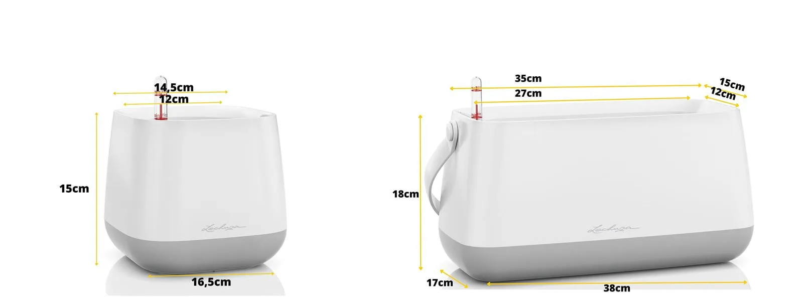 powodując ze ziemia w donicy nasiąka wodą i jest absorbowana przez korzenie rośliny. - Wskaźnik poziomu wody wskazuje, kiedy należy uzupełnić zapas wody w zbiorniku.Ważne! System nawadniający prawidłowo działa dopiero po 2-3 miesiącach od posadzenia rośliny. W tym czasie korzenie rozrastają się do systemu nawadniającego. Przez pierwsze 2-3 miesiące, roślinę należy delikatnie podlewać do ziemi.