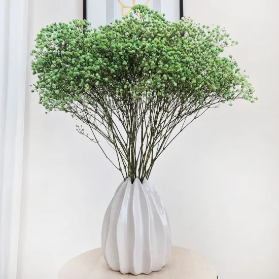 W odróżnieniu od świeżej gipsówki, stabilizowana nie wymaga pielęgnacji. Nie należy wstawiać jej do wazonu z wodą. Nie musisz też martwić się o podcinanie końcówek.
