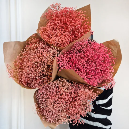 W odróżnieniu od świeżej gipsówki, stabilizowana nie wymaga pielęgnacji. Nie należy wstawiać jej do wazonu z wodą. Nie musisz też martwić się o podcinanie końcówek.