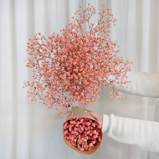 W odróżnieniu od świeżej gipsówki, stabilizowana nie wymaga pielęgnacji. Nie należy wstawiać jej do wazonu z wodą. Nie musisz też martwić się o podcinanie końcówek.