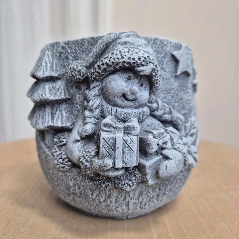 Osłonka ceramiczna na doniczkę betonowa z dziewczynką z prezentami