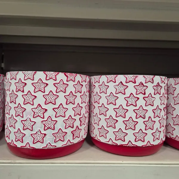 Osłonka ceramiczna na doniczkę biała w czerwone gwiazdki