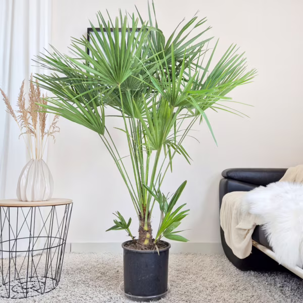- Poprawia nastrój — palma wachlarzowata ma pozytywny wpływ na nastrój i samopoczucie. Badania wykazały, że obecność roślin doniczkowych w pomieszczeniu wpływa pozytywnie na nasze samopoczucie i zmniejsza stres.