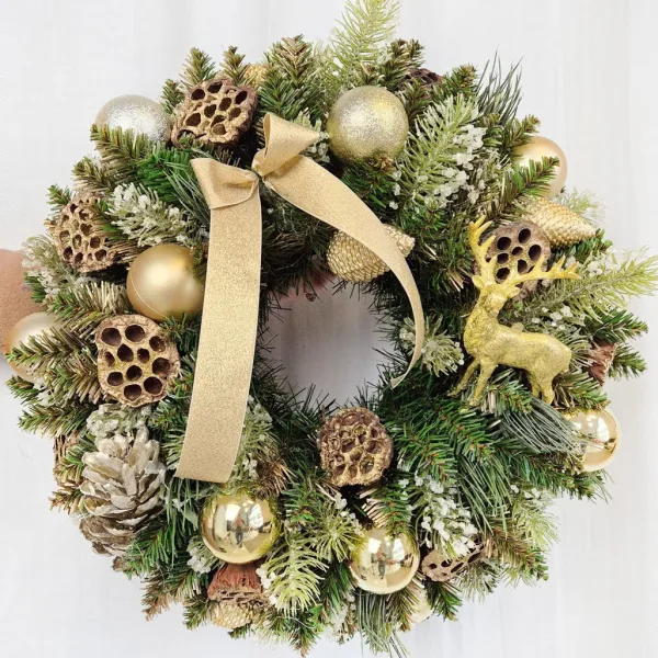 Wianek na drzwi świąteczny bożonarodzeniowy sztuczny – 50cm – ręcznie robiony: