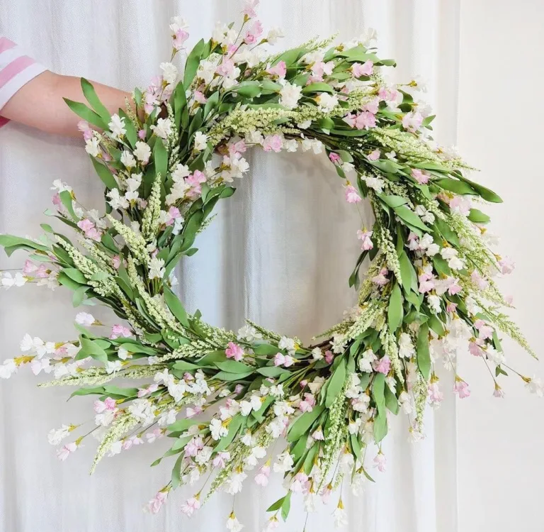 Wianek na drzwi ze sztucznych kwiatów różowy 80cm:
